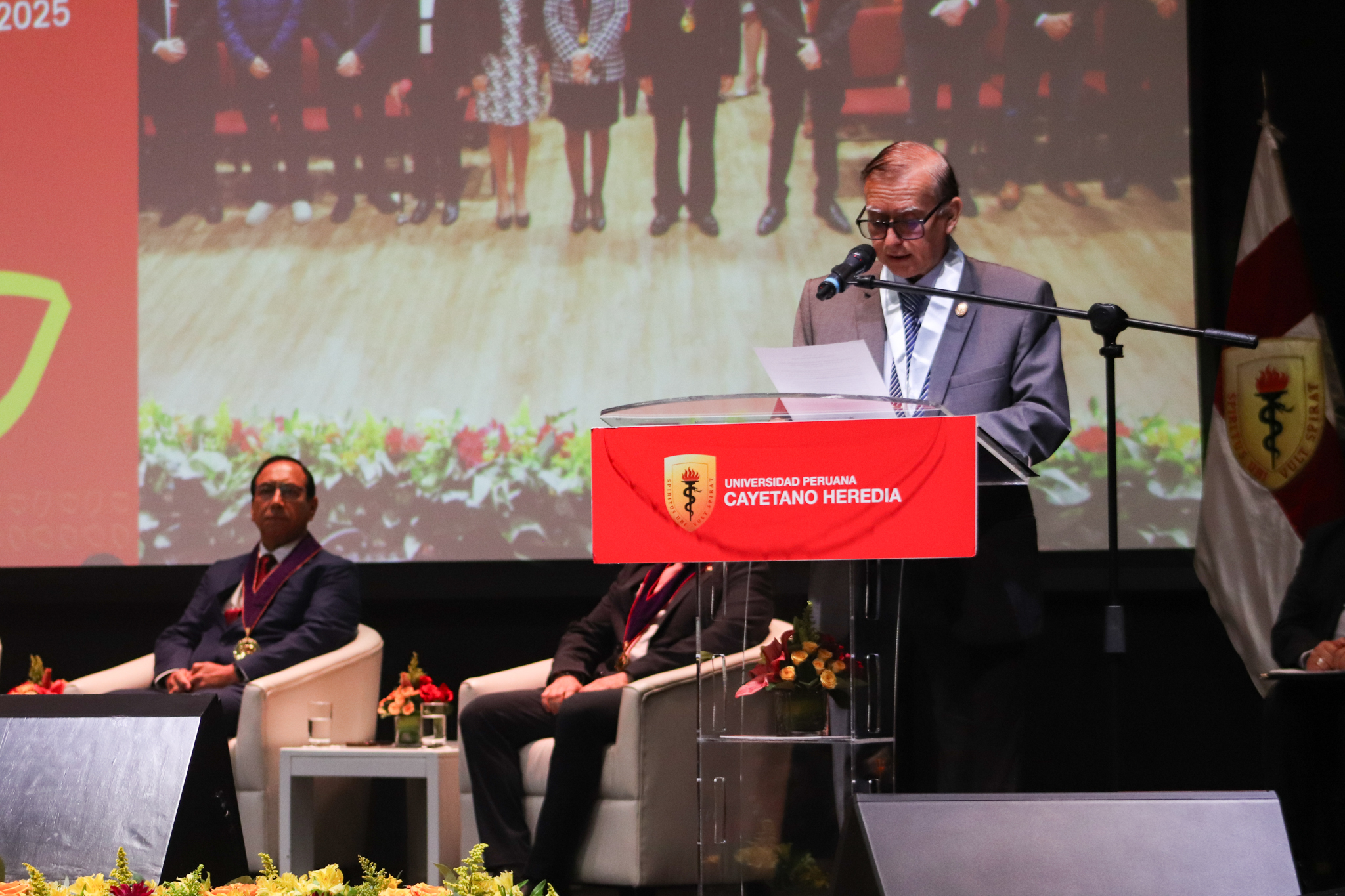 Durante la ceremonia, el Discurso de Orden estuvo a cargo del Dr. Alfonso Zavaleta Martínez-Vargas, quien resaltó el rol fundamental del docente universitario en la formación de profesionales con sólida base científica, pensamiento crítico y valores éticos.