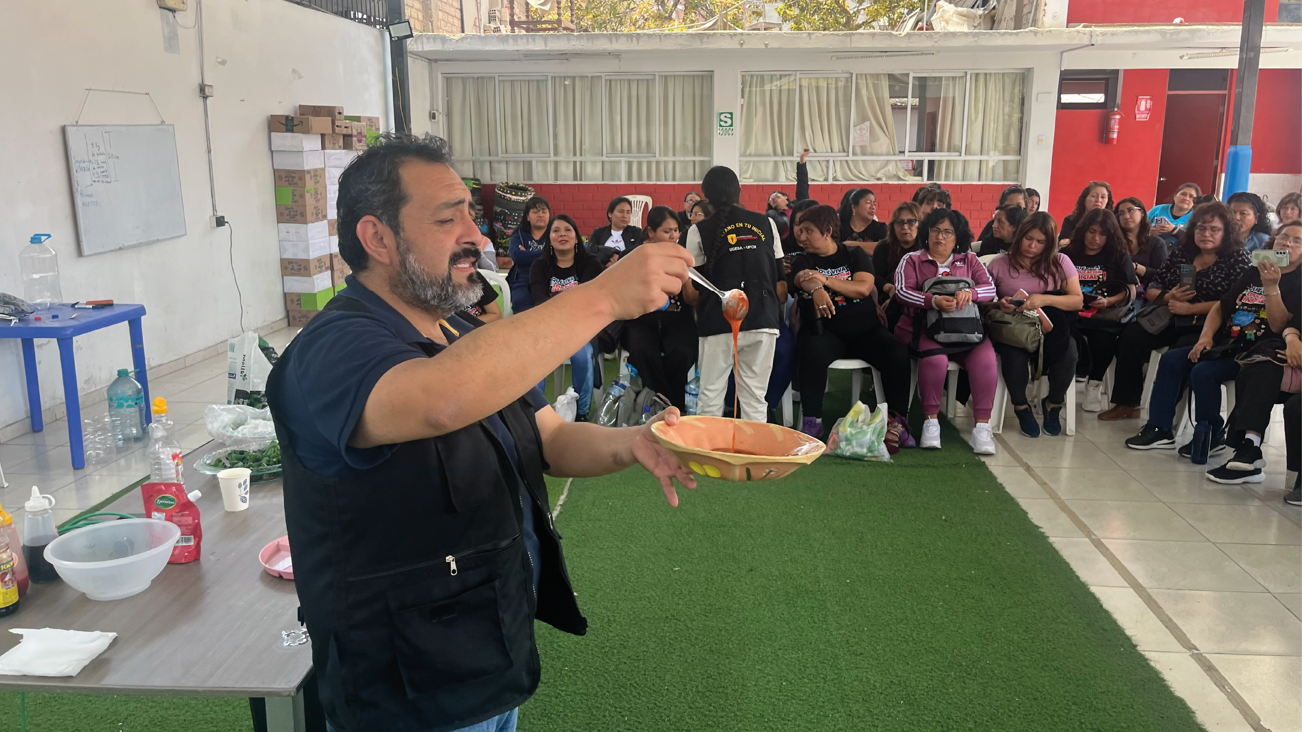 Actividades como el desarrollo de ejercicios físicos en espacios comunes como los patios, la incorporación de verduras salteadas y cocidas en los salad bar, el uso de insecticidas orgánicos en los biohuertos y nuevas estrategias para uso del plato saludable fueron los temas principales desarrollados en esta reunión, que se suman a las acciones de fortalecimiento y capacitación desarrolladas en las ya 3 jornadas participativas desarrolladas en el marco del proyecto.