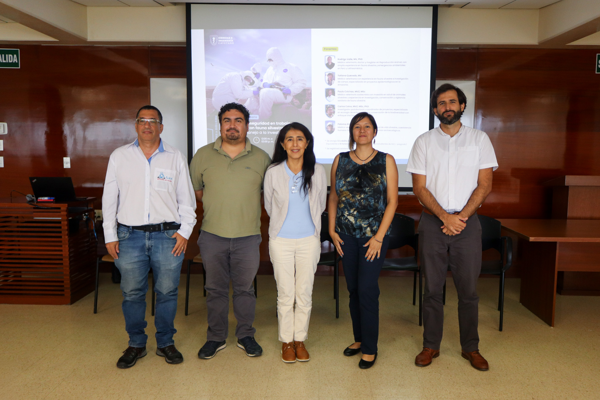 Durante la actividad se presentaron proyectos actuales vinculados al estudio de fauna silvestre, a cargo de destacados especialistas: Rodrigo Valle, MV, PhD; Tatiana Quevedo, MV; Paulo Colchao, MVZ, MSc; Carlos Calvo, MVZ, MSc, PhD; y Paloma Alcázar, MV. Sus exposiciones permitieron conocer avances, metodologías y desafíos en el manejo de especies silvestres y la investigación de patógenos en campo.
